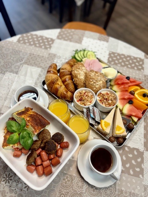 Paikan päällä hintaan sisältyy tuoremehu ja kahvi/tee